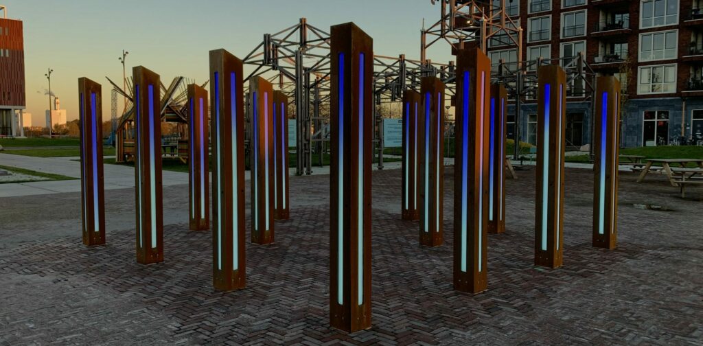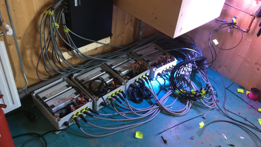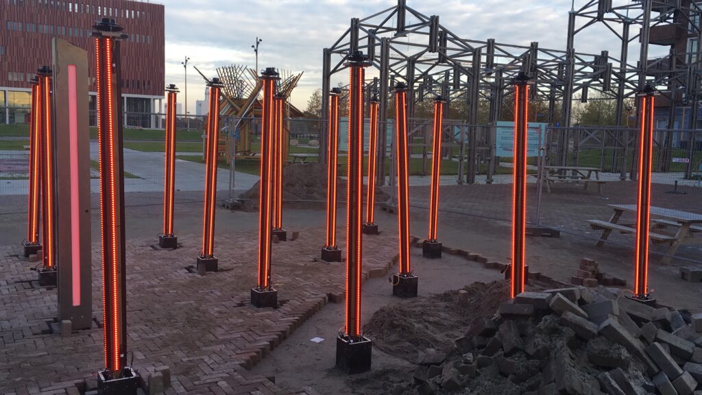 My roll was the design, development and building of the technical side of the installation. This included custom sensor boxes, software for the translation of sensor data to light animations and the overall technical infrastructure.