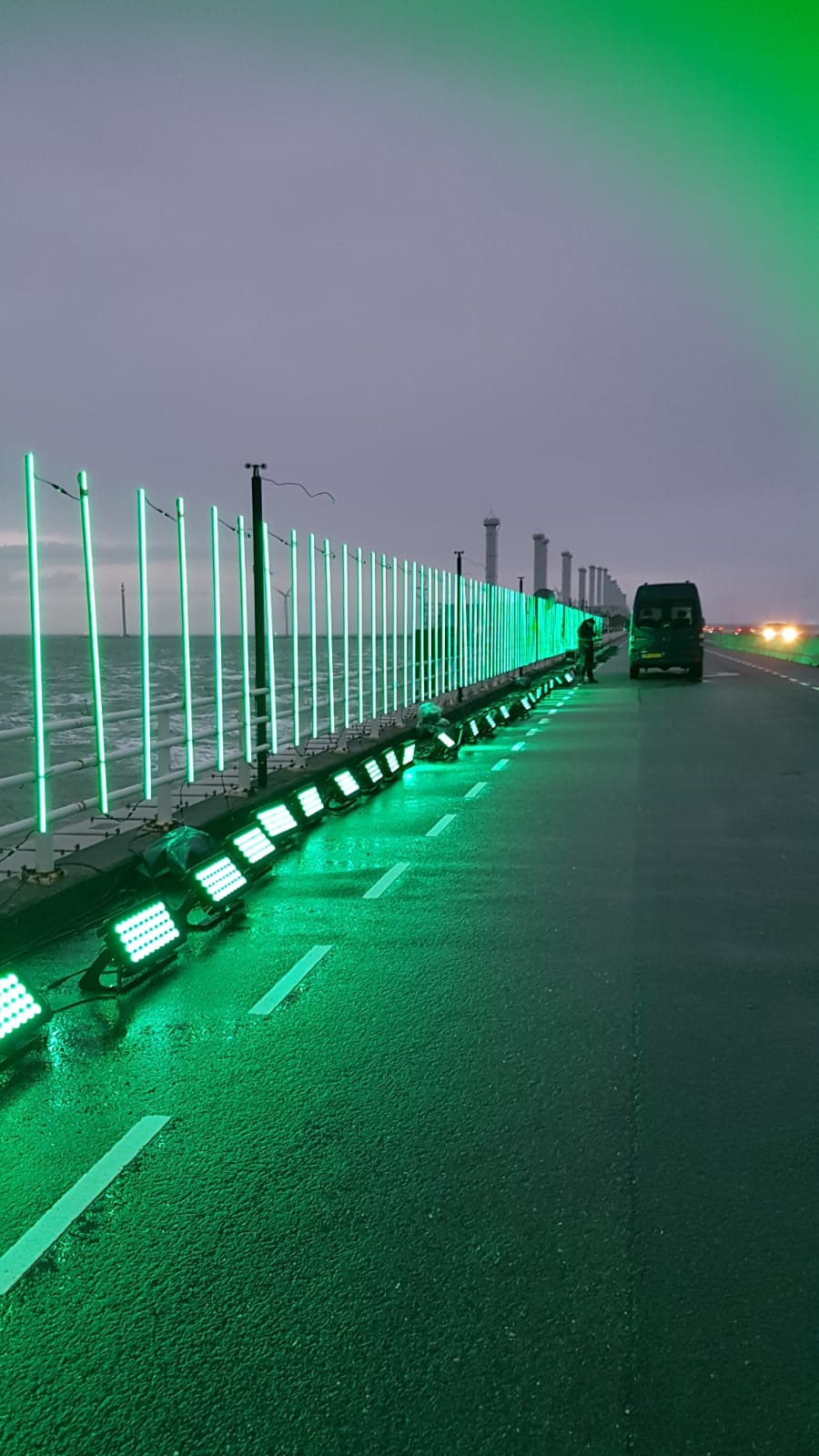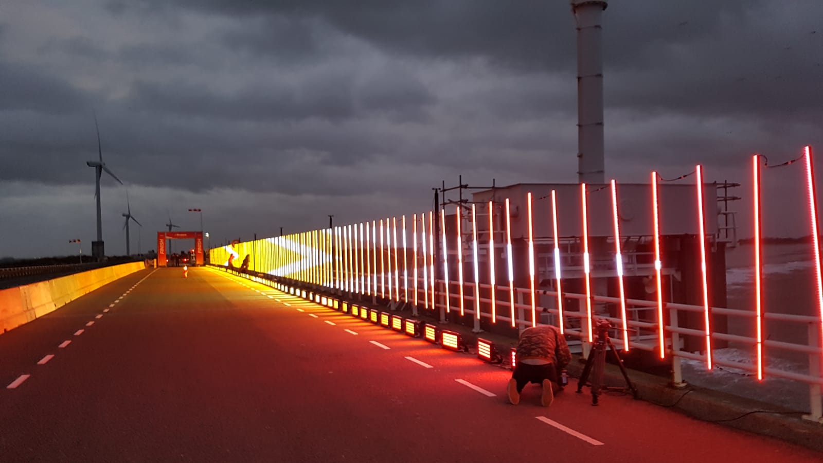 When the wind is strong enough, Eneco organises a biking championship were participants cycle against the wind. An interactive LED installation visualised the power of the wind.
