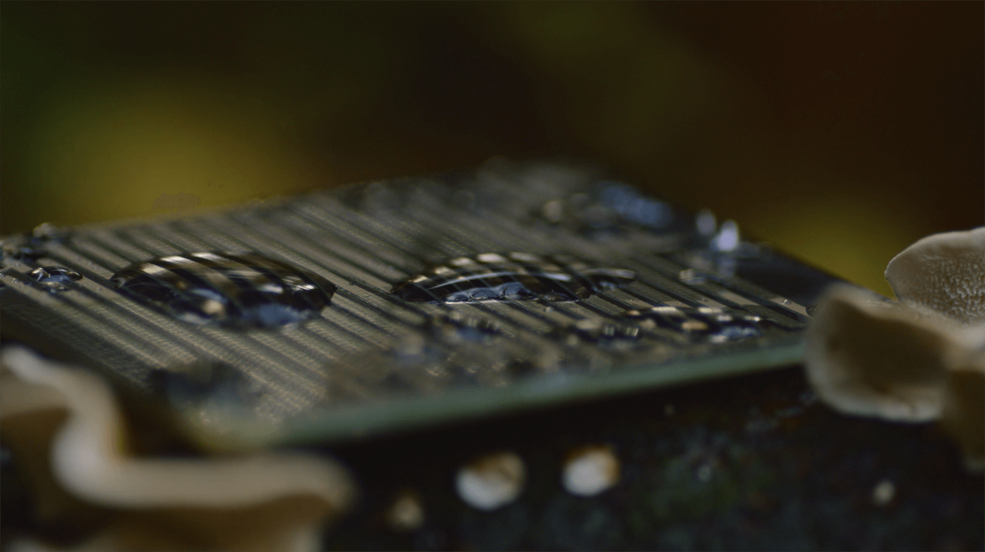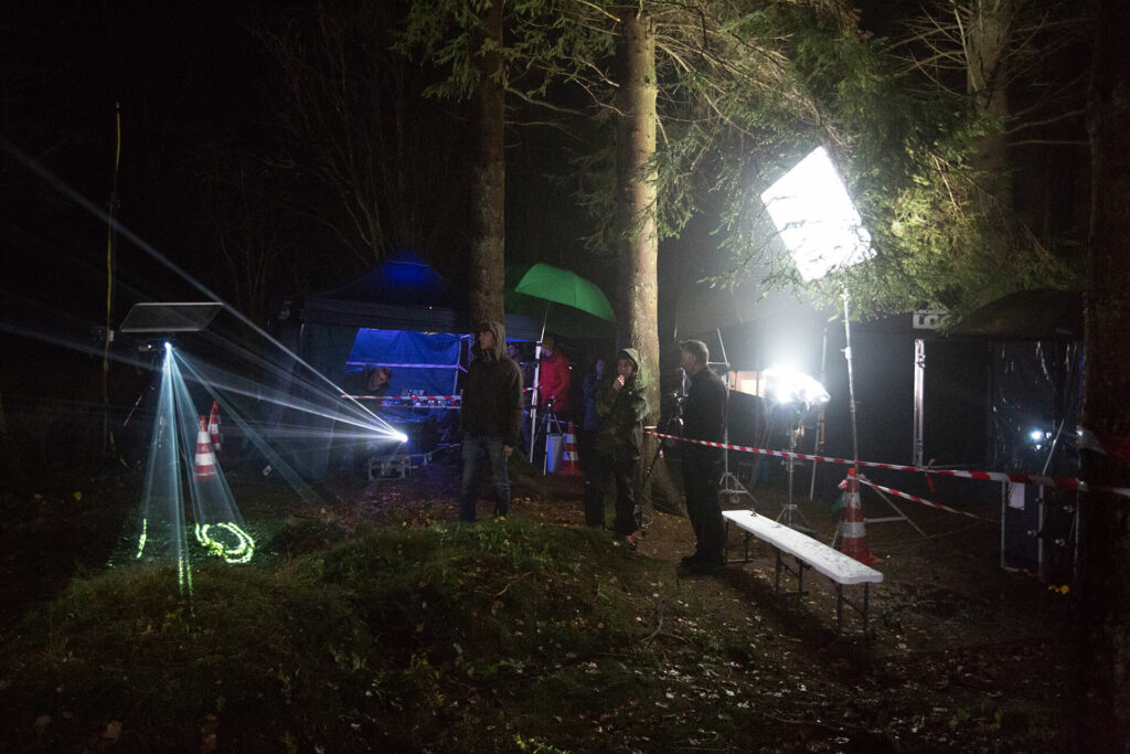 This film show the story of how rain turns into Spa water. This is done by visualising the path of drops of water and the way they travel through the forest. For this, an installation was created that detected rain drops and used these triggers to control audio and video.