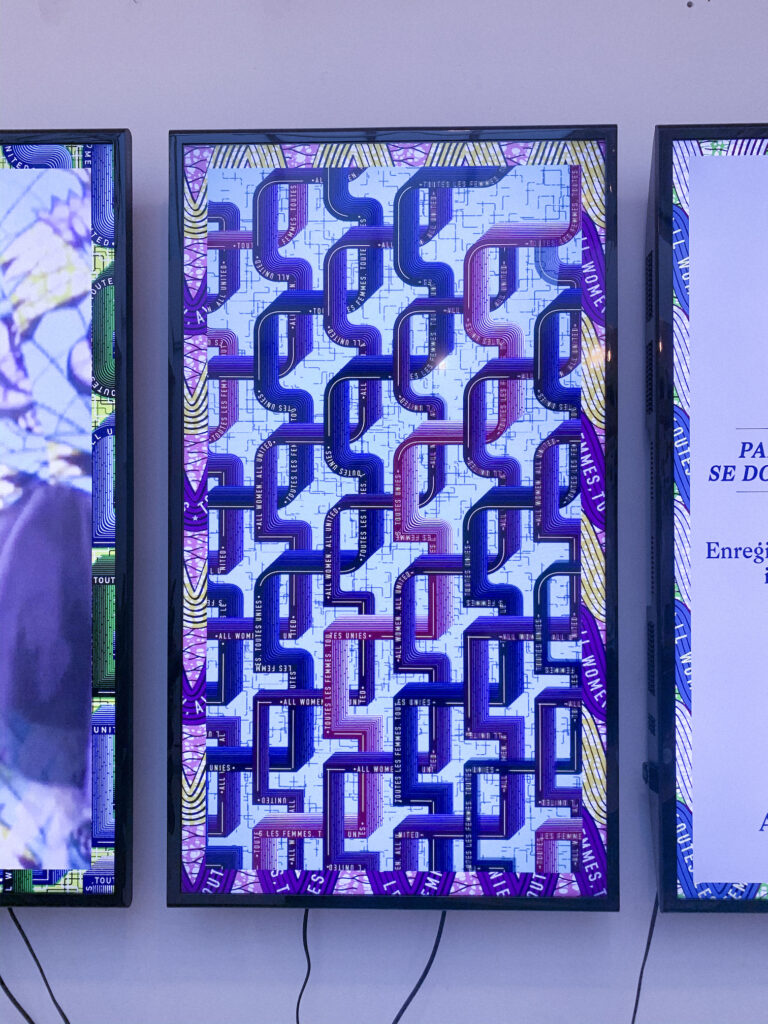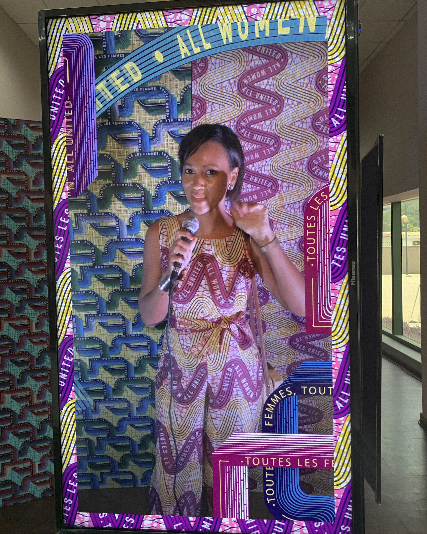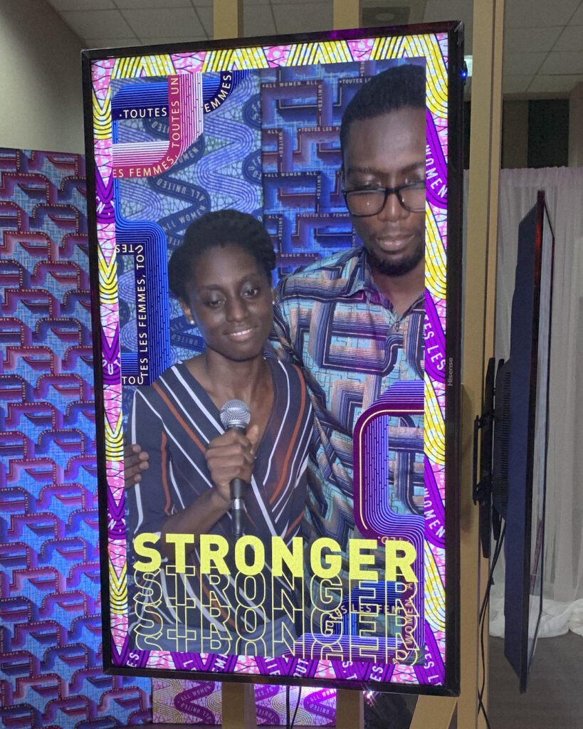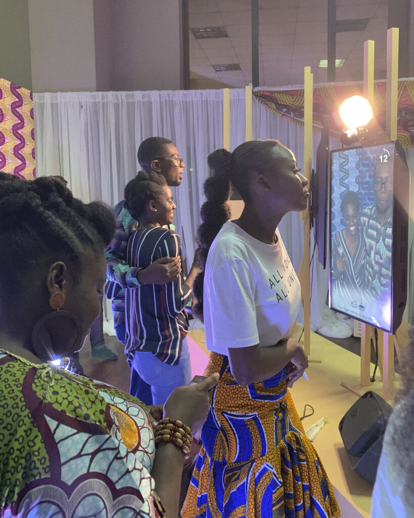 Mixed with animated graphic layers and ready to share with women who are in the same type of installation or event in different countries. Connect them all in an engaging way. Encouraging them to connect and empower. Make their voices heard. The installation was set up during the Vlisco events for International Women’s Month in Ivory Coast, Ghana, Benin and Togo.
